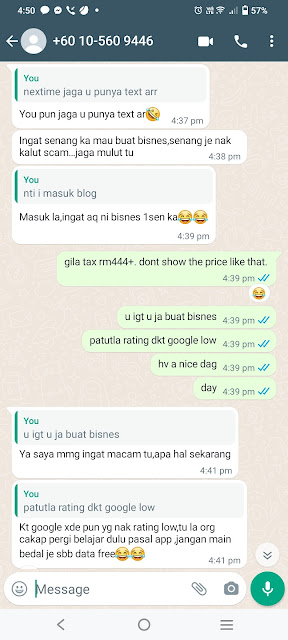 So, nak lah reserve dan booking. Bila tiba dekat final pay tu, tetiba keluar RM400++ total kena bayar. What da fish? 😳😳 So, aku trylah whatsApp nombor yang dia letak dekat dalam gambar.